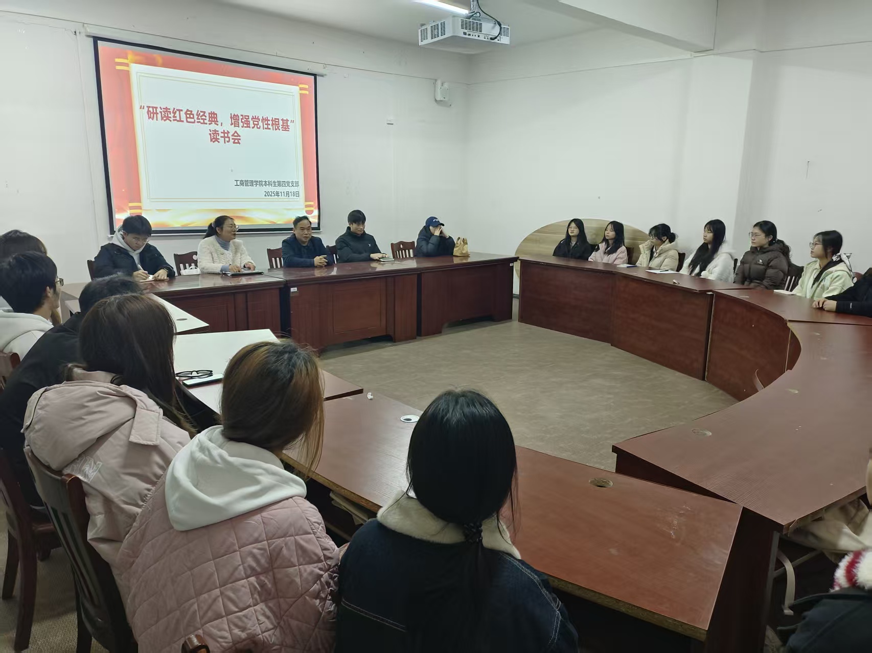 为强化员工党员党性修养,引导青年党员从红色经典中汲取精神力量,2025年11月18日,beats365官网入口本科生第四党支部在翠竹苑二栋举办“研读红色经典,增强党性根基”读书会。公司副经理胡北明到场指导,本科生第四支部书记蒋小芳及全体党员员工参与活动。