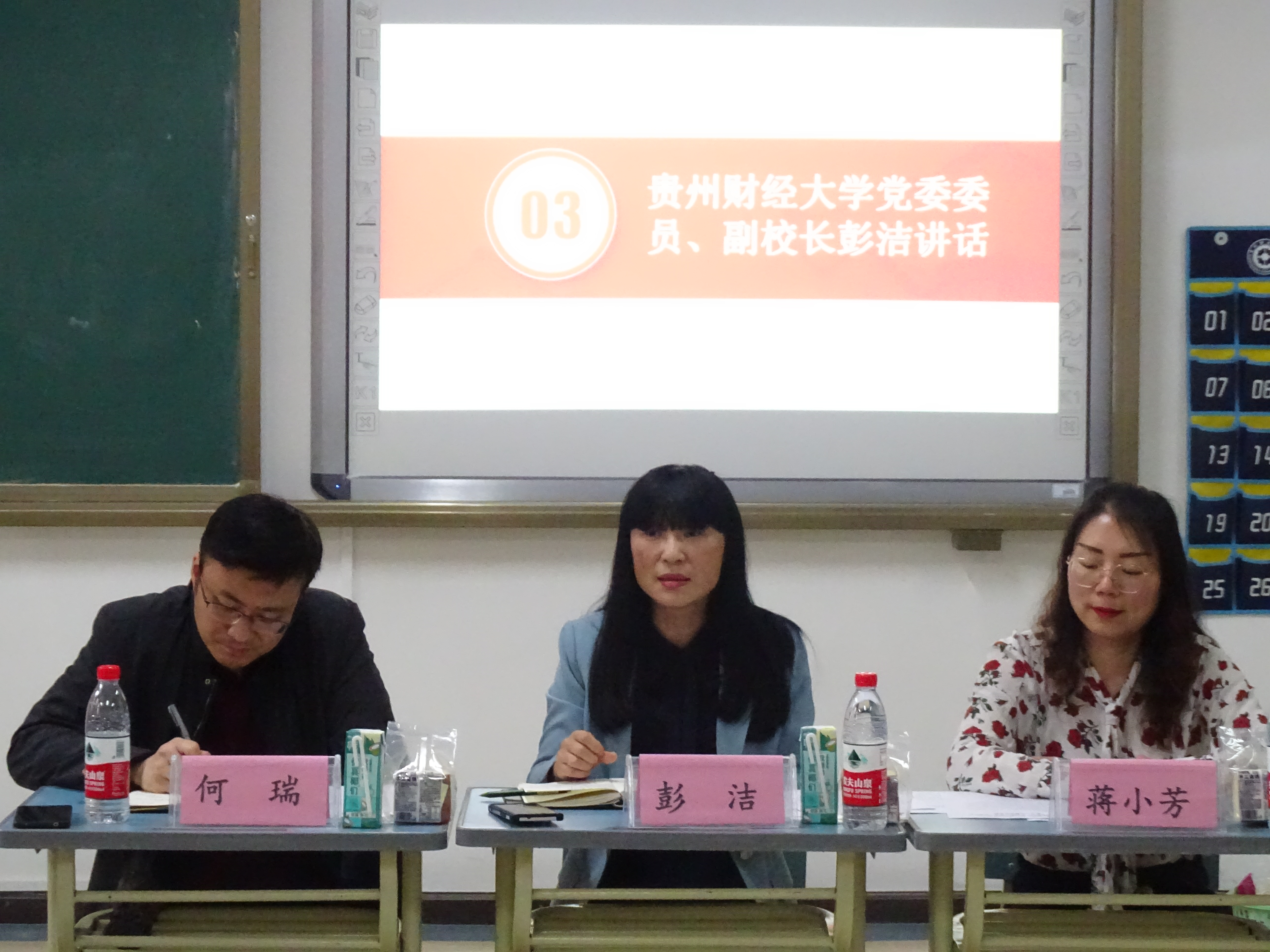 听完同学们的发言后,彭洁副董事长首先对此次班会给予了充分肯定。随后,对于同学们自身发展提出了以下建议:一是同学们要牢记习近平总书记的嘱托,不负韶华,不负时代,不负人民,在青春的赛道上奋力奔跑,争取跑出当代青年的最好成绩。中国共产主义共青团即将迎来100周年诞辰,共青团之所以能不断的发展壮大,就是因为始终秉持了听党话、跟党走的传统,同学们一定要坚定理想信念,积极向党组织靠拢,努力成长为堪当民族复兴重任的时代新人。二是同学们要找准自己的发展定位和人生目标,个人的选择是小我,国家民族的命运是大我,要把小我的目标和大我的发展结合起来,在全面建设社会主义现代化国家新征程上勇当开路先锋、争当事业闯将,希望更多的人才留在贵阳和贵安,努力实现贵州“强省会”的五年发展战略目标。三是同学们要努力提升自己的核心竞争力和综合能力,练好内功,将“立大志、明大德、成大才、担大任”落实好,为实现中华民族的伟大复兴和中国梦贡献自己的青春力量。