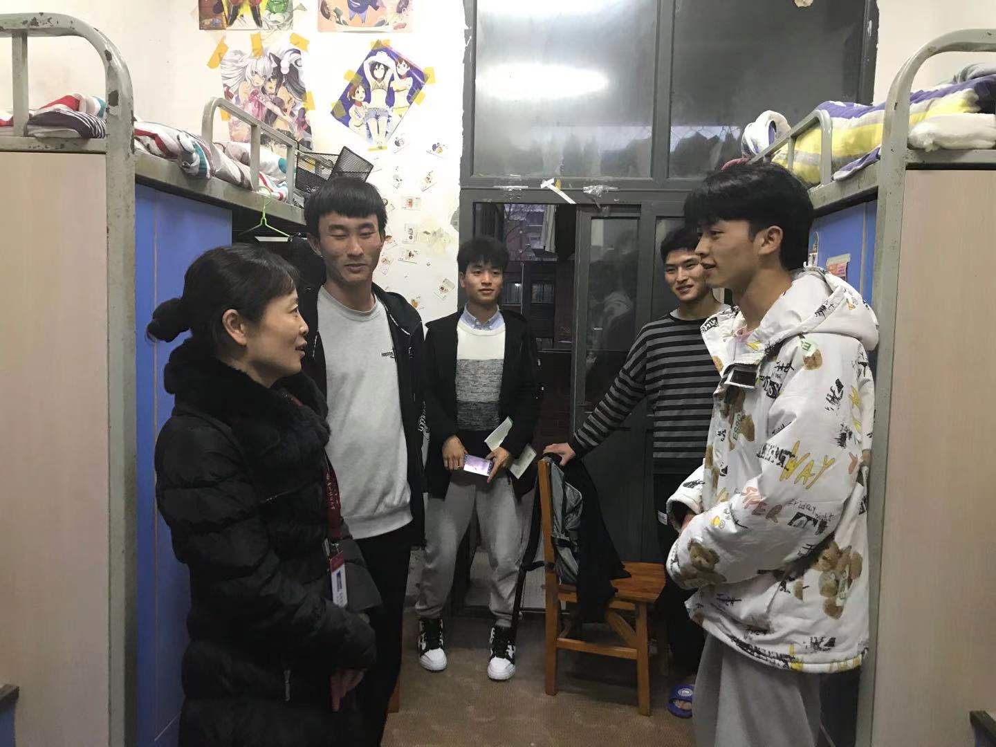 3月25日晚6:00,工商管理公司党委书记杨阳、党委副书记何瑞带领全体辅导员老师开展了本学期第二次员工寝室检查走访工作。