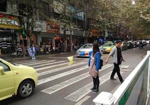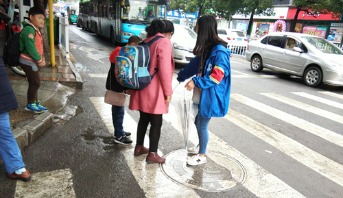 本次活动共分2队,每队共四组,各组轮流换班,每组执勤90分钟。由各部长作为负责人,带领参与人员乘车前往活动地点。到达活动地点后,负责人将物资分发给参与人员,并细心为他们讲解了活动过程中的注意事项以及一些交通规则,还告诉他们不仅要照顾行人的安全,更要保障自身的安全;然后参与人员到各路口开始工作。然而天不如人愿,当天早上下了很大的雨,一直到10点半左右才停。尽管他们身上都淋湿了,但是第一班的成员们并没有因此放弃,而是坚持冒着大雨在街道上继续执勤,只为让行人们安全出行。在工作的这一个半小时里,成员们都十分认真尽职,红灯时他们面向行人,举起手中的小旗子将等红灯的行人和行进中的车辆隔离;绿灯时他们面向车流,为过斑马线的行人营造安全的环境。本次活动从上午10点一直持续到下午16点成员们轮流交班,最后在花溪交警大队圆满结束。
