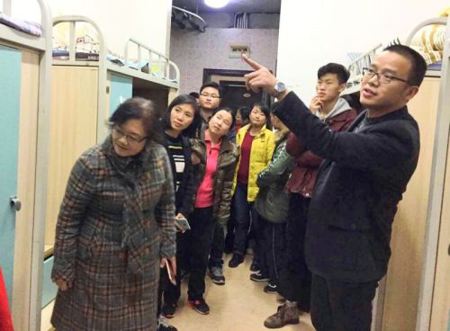2016年12月6日,工商公司党委副书记范嘉虹、陈劲松在所有辅导员的陪同下,来到员工公寓,查看员工寝室用电情况,并告知员工增强诚信意识,遵守考风考纪,以端正的思想和态度迎接期末考试的到来。