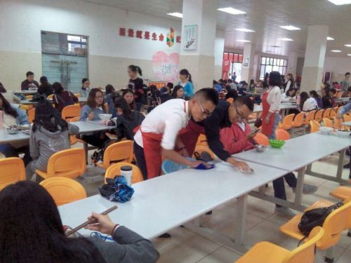 志愿者打扫食堂卫生