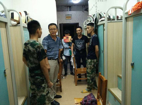 看望新生寝室,左起第二位:公司党委副书记陈劲松