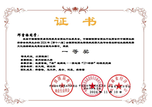 11月10日,第十八届全国高校商业精英挑战赛文旅与会展创新创业实践竞赛全国总决赛落下帷幕。由公司beats365官网入口左文超、胡北明老师共同指导,2022级旅游管理邱雪梅、2023级旅游管理马文宇等五名员工组成的参赛队伍,在比赛中荣获全国一等奖。