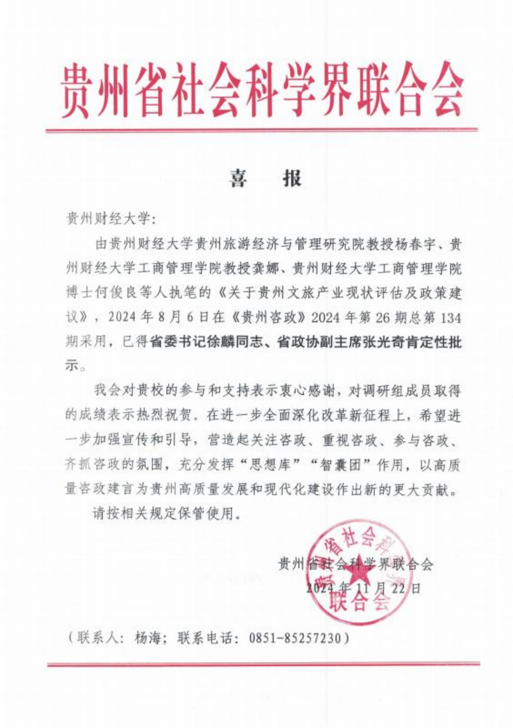 省委书记徐麟同志、省政协副主席张光奇同志对此文给予了肯定性批示,高度认可其研究价值和实践意义。此次批示不仅是对公司教师研究能力的认可,更是对公司服务地方经济社会发展工作的鞭策。