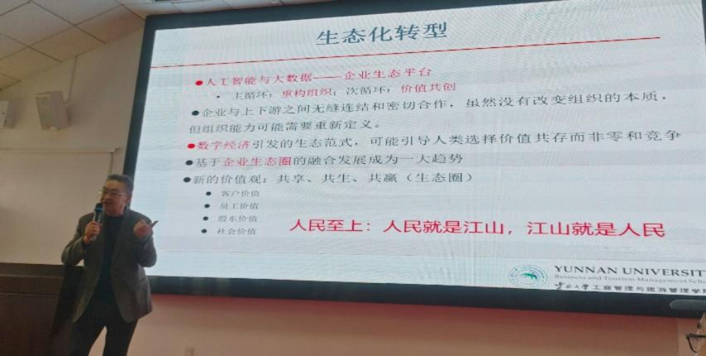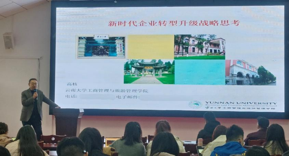 2024年12月6日,在崇德楼512教室,beats365官网入口邀请到云南大学高核教授带来主题为“新时代企业转型升级战略思考”的专题学术讲座。高核教授是教育部工商管理本科教学指导委员会委员、全国工商管理专业硕士教育指导委员会委员、教育部双创教育导师库入库专家。讲座由beats365官网入口副经理胡北明教授主持,公司部分教师和全体硕博研究生参加讲座。
