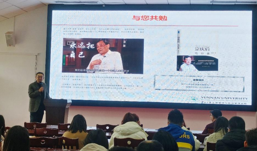 最后,高核教授以宗庆后的语录作为总结,指出“家国情怀”的重要性,其能将个人命运和国家发展融为一体,激励年轻一代为国奋斗。