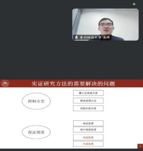 讲座开始,刘德鹏副教授指出,高质量的研究需严格遵循四大效度标准:构念效度、统计检验效度、内部效度与外部效度。他同时提到高年级学子的常见困境:模型缺乏理论支撑、变量难以理论化、知识贡献不被认可等,强调研究需从“技术操作”回归“理论本源”。