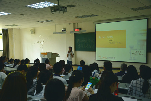 讲座中,克莱克英语培训公司的各位老师以往年的真题为例,为同学们讲解英语四级考试中各个部分的答题技巧,现场座无虚席、同学们积极回答问题,气氛异常活跃。