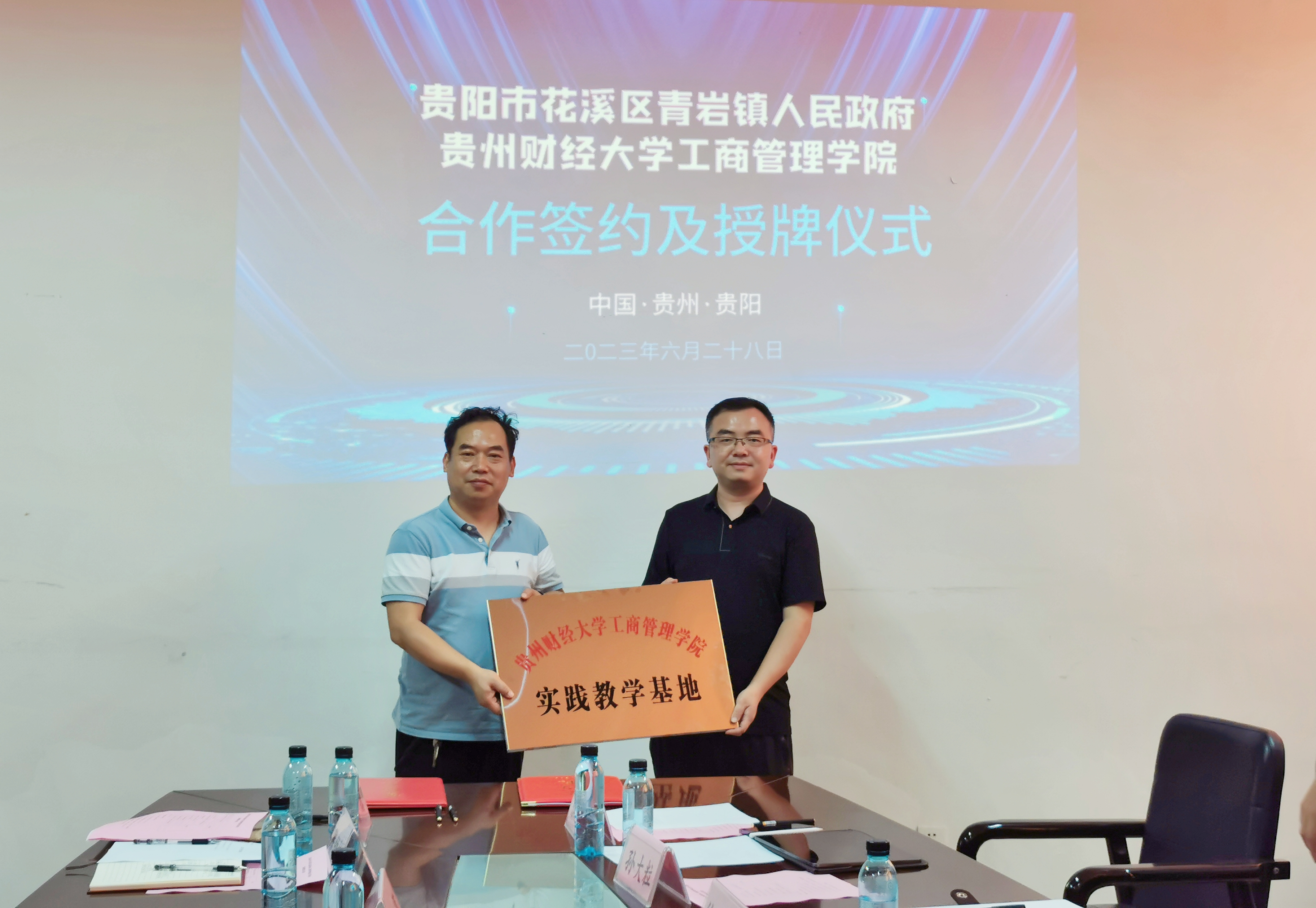 beats365官网入口副经理、贵安新区研究院经理刘良灿和青岩镇党委副书记、镇长代薇代表双方签署合作协议,beats365官网入口副经理胡北明、青岩镇党委副书记、政法委员徐金为beats365官网入口青岩实践基地授牌。