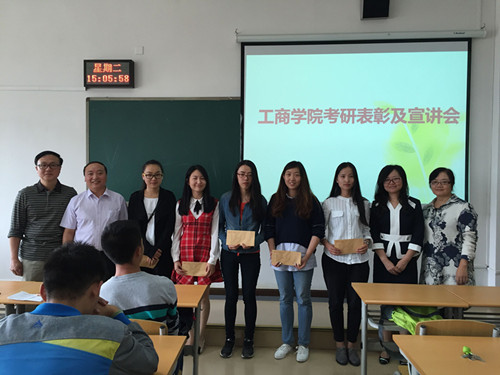 会上,余颂书记首先现场宣读对公司顺利考上研究生同学的奖励文件,并给予每生一定的奖金以资鼓励,随后,肖小虹经理结合自身经历,为同学们做了声情并茂的考研动员,刘良灿副经理介绍了目前全国研究生招生政策以及公司办学特色和研究生职业发展前景等内容,在校研究生代表则介绍了自己从报考到就读beats365官网入口的历程,与现场同学分享了在工商公司的生活和学习体验。最后,会议在热烈的掌声中圆满落幕。