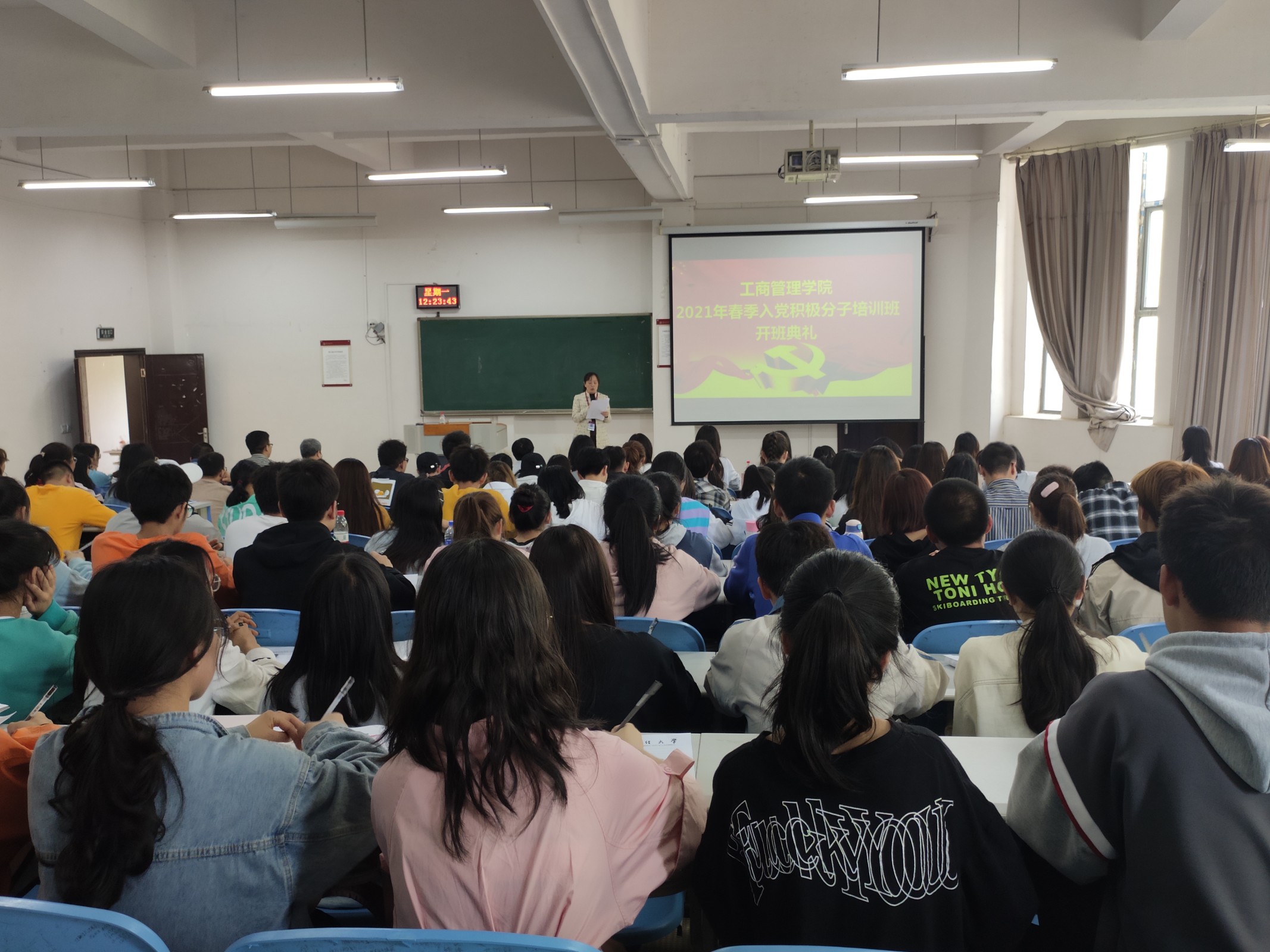 3月29日中午,2021年春季入党积极分子培训班开班典礼暨第一次专题党课在进学楼2-1举行。公司关工委常务副主任张昌杰、工商管理公司党委书记杨阳、公司党委常务副书记、正处级专职组织员崔军同志出席开班典礼,公司专职组织员王孔莉老师、员工党建工作中心全体成员和培训班全体学员参加。开班典礼由崔军主持。