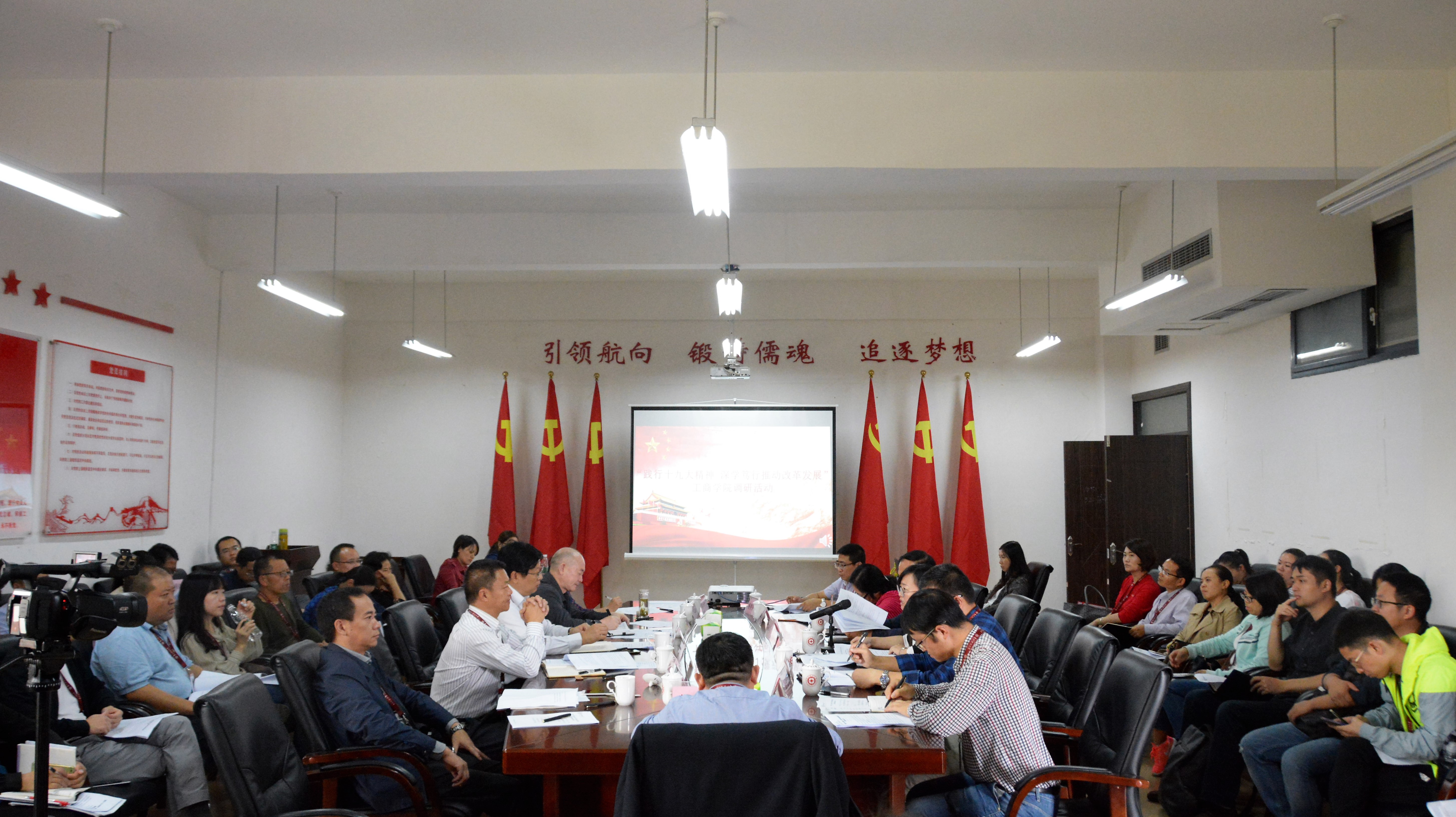 9月19日下午,“践行十九大精神 深学笃行推动改革发展”大调研活动走工商公司。校领导褚光荣、刘雷、杨勇、谌莉萍、赵松、缪坤和、赵普、徐大佑出席,活动由公司党委书记褚光荣主持。