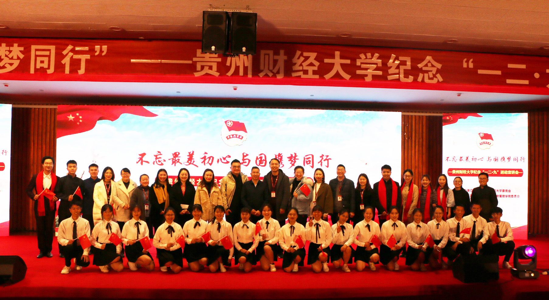 他们以新中国发展不同时期的经典歌曲为主线,唱响了贵财青年人的初心;他们讲述着以惊人速度发展的贵州,展现了独具特色的侗族大歌,带领大家领略贵州迷人的民族风情;他们讲述了贵财人砥砺奋进的故事,他们吟诵着贵财青年的报国志,阐释着青年人的初心和使命。宣讲会现场精彩纷呈,高潮迭出,观众们多次报以热烈的掌声。
