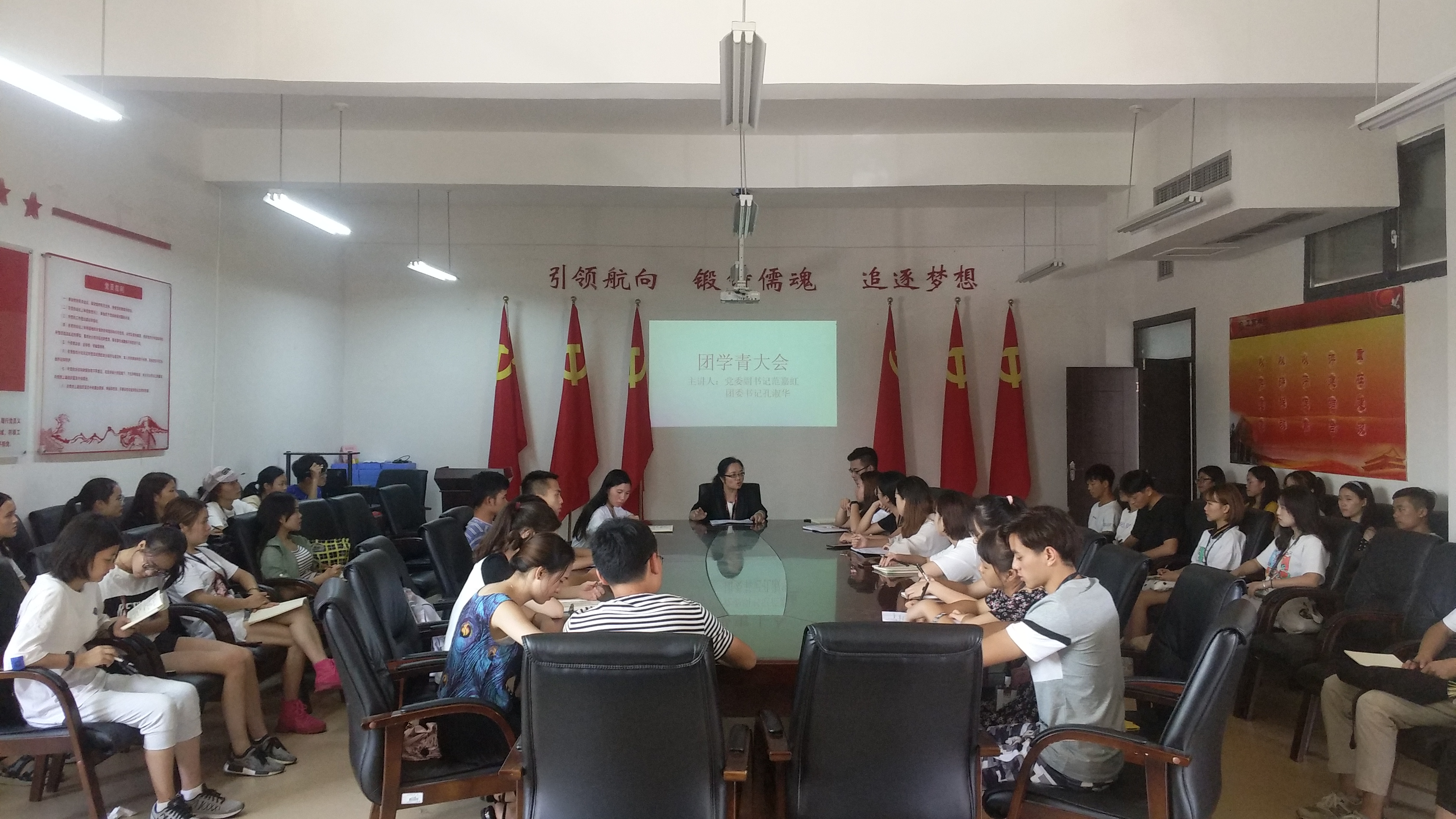 工商公司2018年 “团学青”大会暨全国高校共青团思想政治工作会议精神研究会顺利结束,范嘉虹副书记和孔淑华老师共同希望在新学期,在同学们的共同努力下工商公司能取得更加优异的成绩。