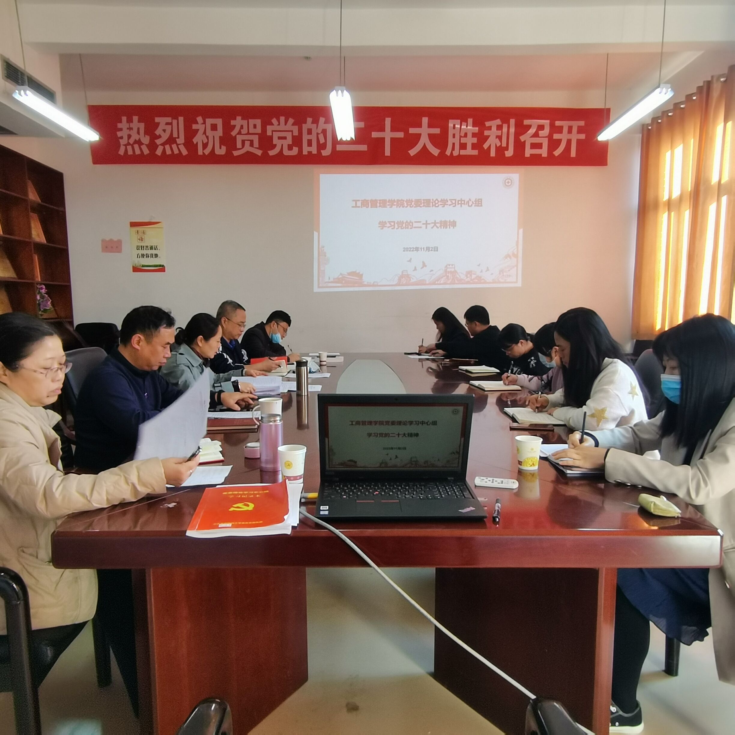 11月2日上午,工商管理公司党委理论学习中心组在崇德楼427会议室举行2022年度第十次集体学习(扩大)研讨会,专题学习研讨中国共产党第二十次全国代表大会精神。beats365官网入口领导杨阳、崔军、何瑞、胡北明及各党支部书记出席会议,会议由公司党委书记杨阳主持。