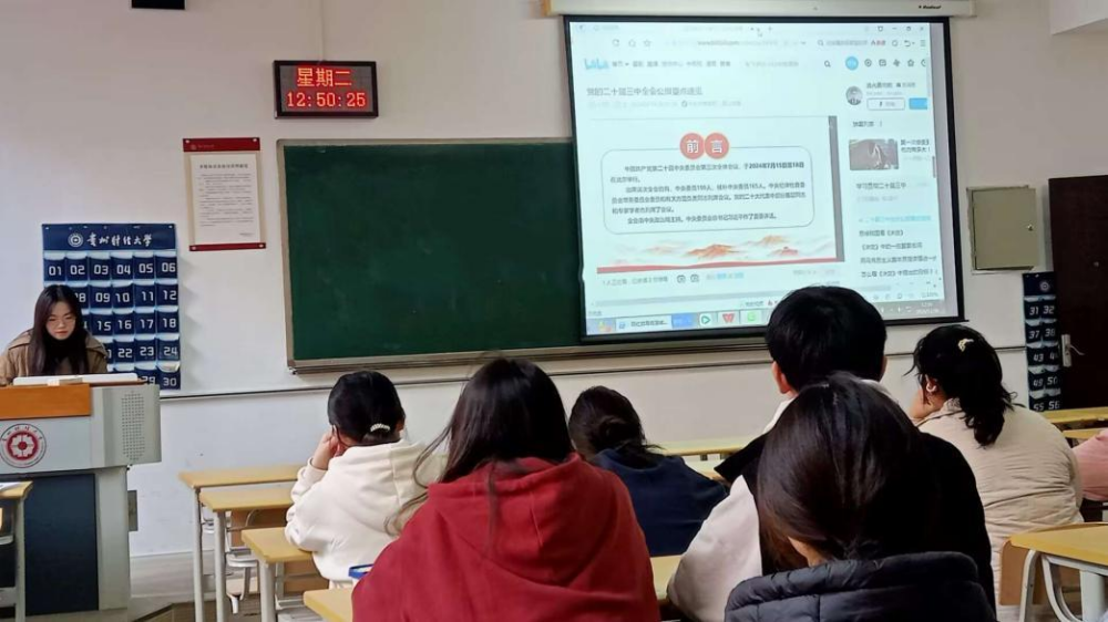 蔡小娜以饱满的热情和鲜活的语言,紧扣党的二十届三中全会精神核心内容,从会议背景和目的、会议主要内容和要点解读等方面,阐释了全会提出的重要战略部署。陈代飞宣讲强调党的二十届三中全会是党和国家进入全面建设社会主义现代化国家新征程的关键节点召开的重要会议,他结合当前国家发展形势和新时代青年的历史使命,通过改革开放以来的发展案例和数据,号召全体共青团员,我们作为国家的未来和民族的希望,应当以实际行动践行全会精神,立足时代使命,投身实现中华民族伟大复兴的征程。