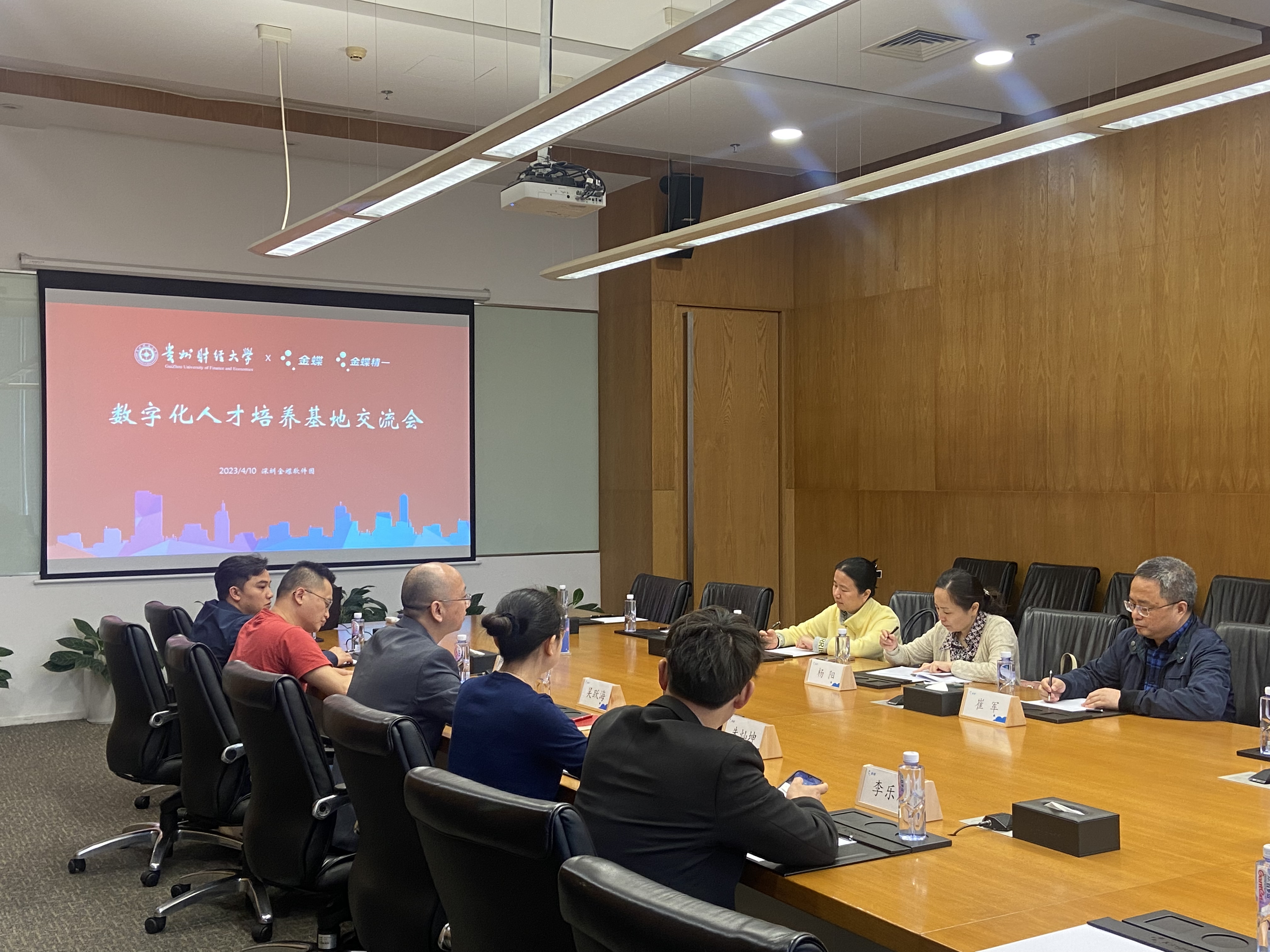 4月10日,工商管理公司党委书记杨阳,常务副书记、正处级组织员崔军等一行赴深圳金蝶国际(软件)集团有限公司就数字化人才联合培养开展调研交流。金蝶软件(中国)有限公司客户成功部总经理吴跃海、金蝶精一信息科技服务有限公司总经理陈跃及莫成龙、朱灿坤、孔锶芃等部门负责人参加交流座谈。