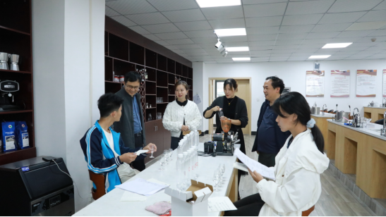 授牌仪式前,在台江县中等职业公司副董事长刘小芳等人的陪同下,胡北明副经理带队先后调研了台江县中等职业公司的苗绣产教融合基地、调酒实训室和茶艺实训室,并现场有针对性地开展了指导交流。