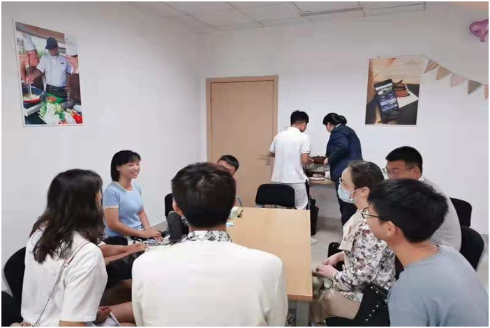 吴老师参观了酒店的展厅、西餐厅、中餐厅及客房,随后与同学们进行了学习交流。吴老师首先了解了同学们这一个月的实习情况和收获,听取了同学们在工作上和生活上遇到的困难,并针对员工提出的问题进行了细心指导和解答,对同学们接下来的工作提出具体建议。