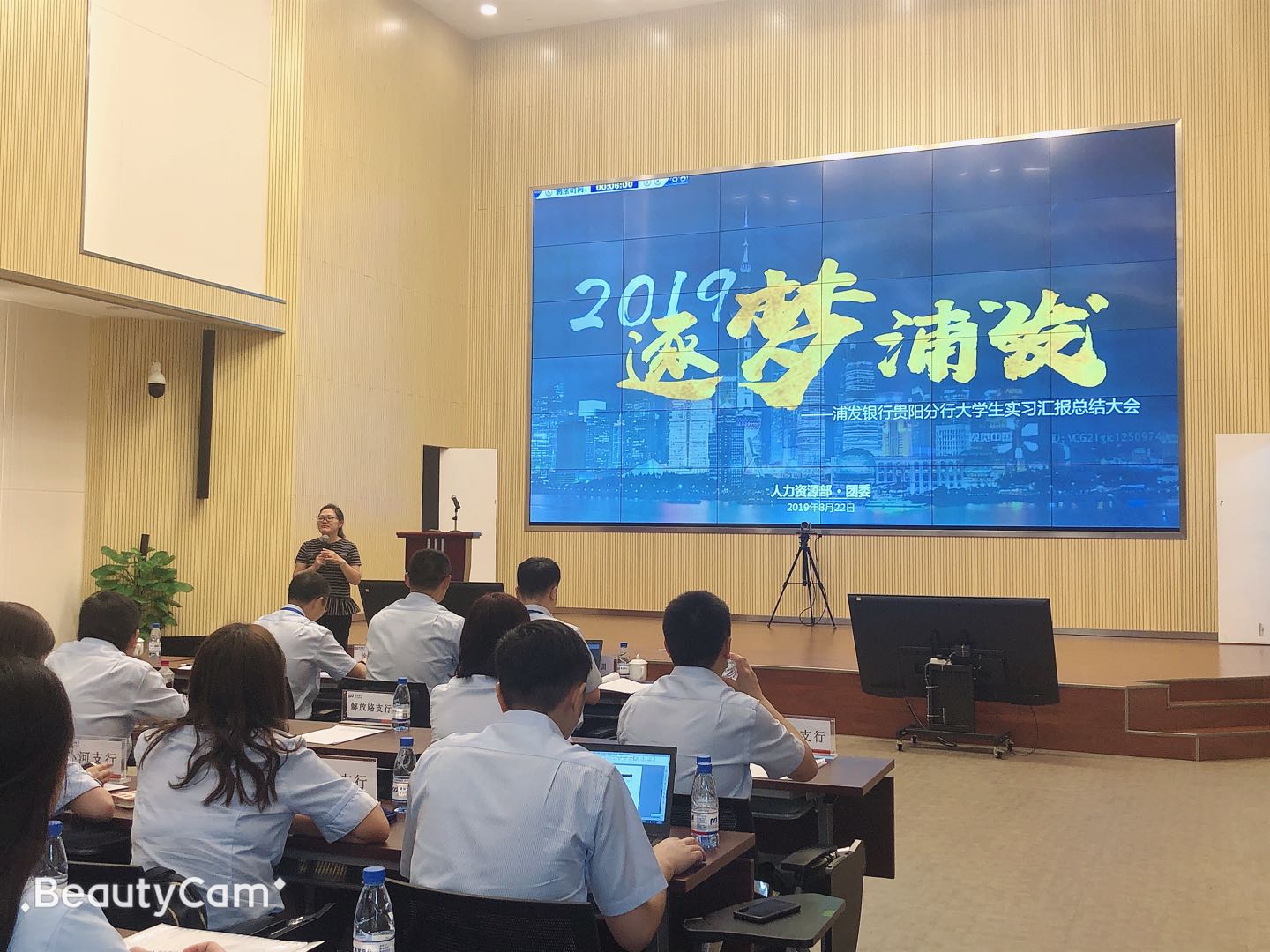 2019年8月22日星期四下午1:30,浦发贵阳分行在中天·会展城B区金融商务区东区东四塔三楼视频会议室成功举办了贵阳分行2019年老员工实习汇报总结大会。参加此次活动的主要有浦发银行各评委们、beats365官网入口工商系副主任王祯敏和教研室罗老师以及全体“浦发之星”实习生。