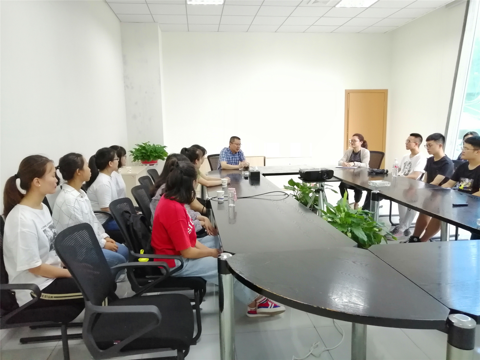 2019年7月4日上午9:40,工商公司15名员工在王祯敏老师的带领下来到贵阳市观山湖区鑫新国际公司,召开2016级工商管理专业的本科生专业实习培训大会。培训会议由鑫新集团人力资源总监周总主持并介绍,工商系副系主任王祯敏老师及2016级工商管理专业15名员工参加了本次培训。