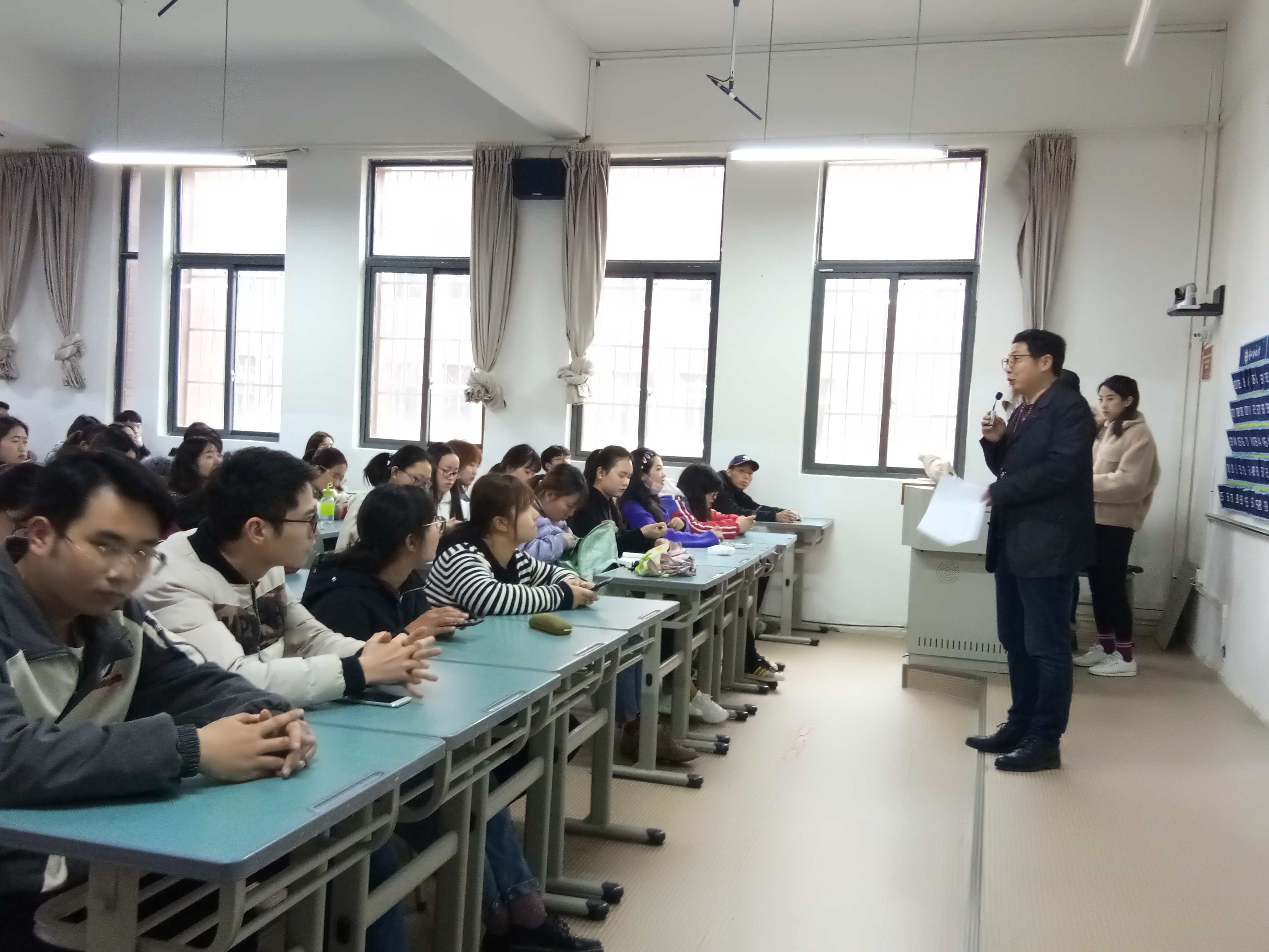 在大会上,首先由陈江涛老师讲述本次专业认知实习的目的、实习时间、实习公司、实习报告撰写以及相实习期间的相关注意事项等。陈老师要求员工要在专业认知实习之前做好充分的准备,例如了解实习公司的历史背景、经营理念;除此之外,陈老师还特别强调了在专业认知实习期间的安全注意事项。
