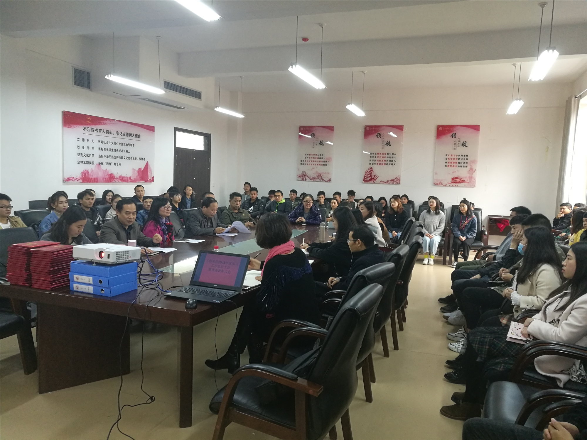 2018年10月16日下午13:30,工商公司2018年度实习工作总结暨优秀表彰大会在崇德楼326会议室举行。工商公司肖小虹经理、陈劲松副书记、胡北明副经理、刘良灿副经理、实践办教务办工作人员、各系副主任、全体优秀实习生、实习指导教师、15级各班实习生代表参会。