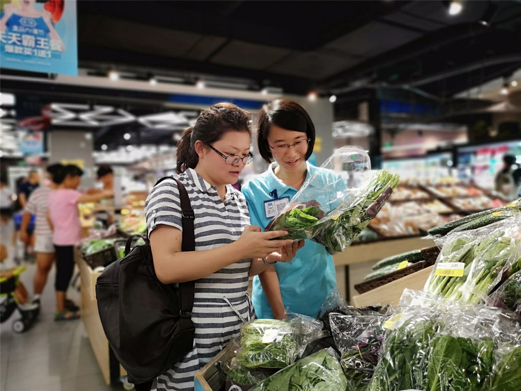 2018年8月15日,工商公司系副主任王祯敏老师赴盒马鲜生荔星店看望15级工商管理实习生。