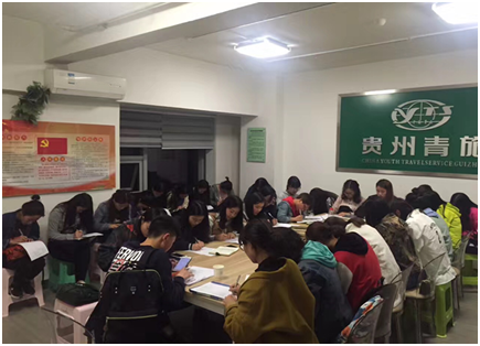 公司旅游管理专业连续两年将员工派往贵州青年旅行社总社进行专业实习,实习岗位包括导游、组团计调等,实习留用率达到67.3% 。得知今年有13名同学在入黔中心导游岗位实习,朱总表示,非常高 兴高校毕业生能充实到旅行社一线导游及 管理岗位,今后将在管理培训生、导游培训、互派管理人员、优秀导游进课堂等方面加强与公司的合作。下图为3月底就开始到青旅入黔中心参加培训的同学们。