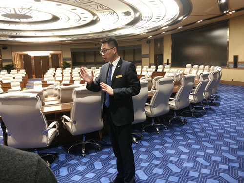 2017年5月2日,会展班全体同学在李树梅、王超、万程成三位老师带队下到贵阳花溪大学城群升豪生酒店东盟国际会议中心进行认知实习。实习过程由酒店人力资源部张经理,市场销售杨经理等带员工参观国际论坛厅、百花厅,青岩厅、梵净山厅、西江厅、镇远厅等以贵州地名为特色的会议厅,囊括了国际会议、论坛,小型私密会议,贵宾接待,新闻发布等功能会场设施和功能介绍,并做相关会议组织策划和介绍。参观后,张老师做了关于东盟国际会议中心认知实习的专题介绍,让同学们初步了解到会展这个专业将来是干什么的,从事这份工作需要怎样的精神和能力,了解到会展业和酒店业是相辅相成不可分离的,有会议必有酒店,期望同学们不仅要精通本专业知识更要涉及其他专业知识,将自己培养成一个高素质应用型的会展老员工。