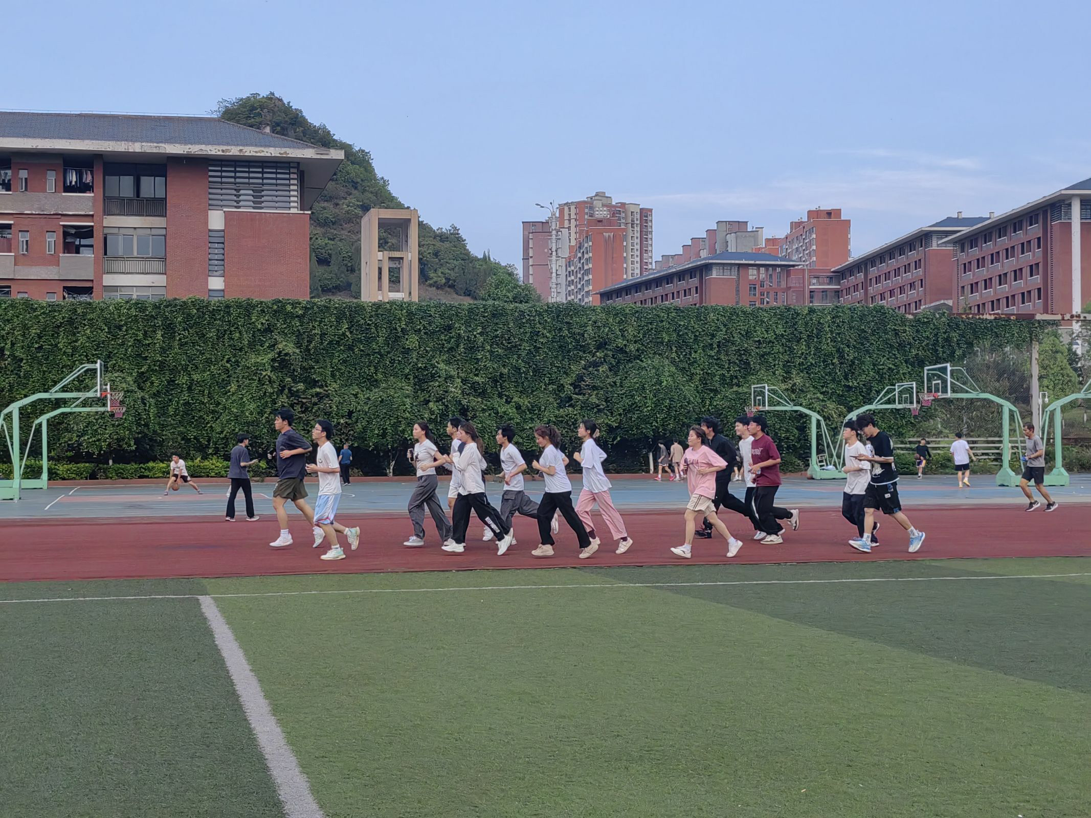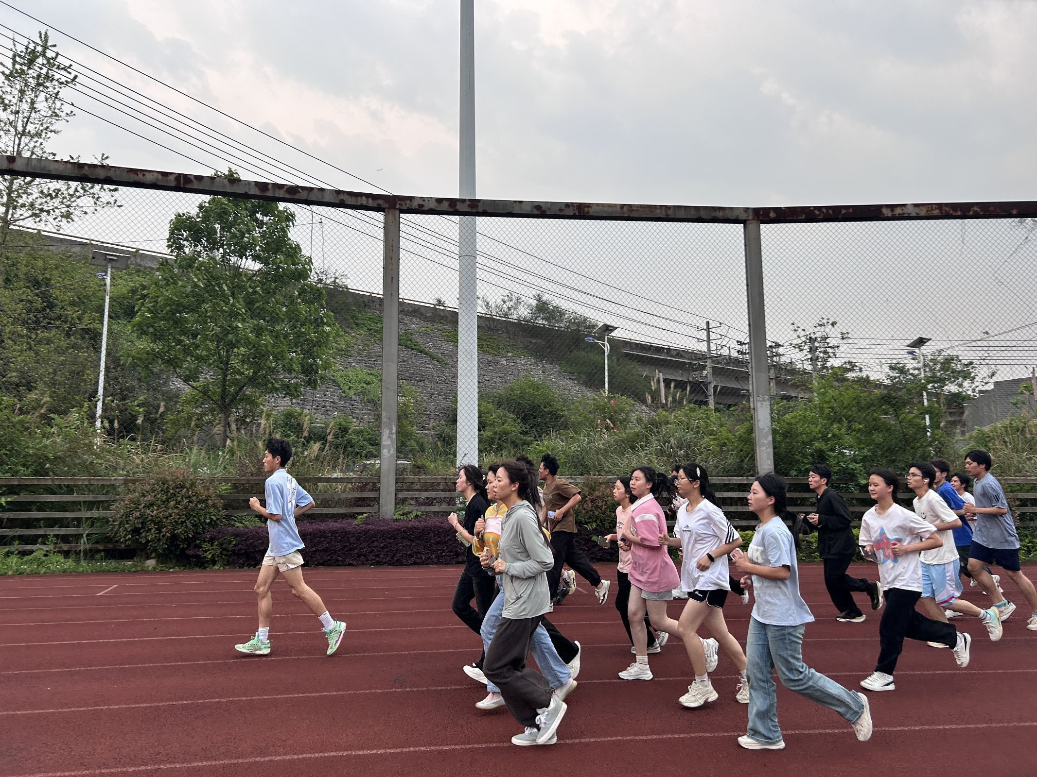 晚上6:30,同学们已准时在南区体育场集合完毕。随后,实践部部员进行了安全教育并详细讲解了相关事项。紧接着,青协工作人员领跑,活动正式拉开帷幕。在奔跑过程中,同学们秩序井然,无人掉队,大家展现出了团结友爱、互帮互助的团队精神。