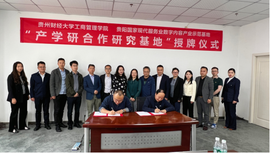 2024年5月13日,工商管理公司党委书记杨阳、经理刘良灿、党委常务副书记崔军、专职教师任廷海和王祯敏、工作人员张贵婷到贵阳国家现代服务业数字内容产业示范基地进行“产学研合作研究基地”签约暨授牌仪式活动,参加此次活动的人员有:白云区统战部副部长蒋贵容、区大数据局党组书记杜晓峰、区工商联党组书记邓顺华、区大数据局副局长张纯、云城街道优化营商环境服务中心主任陈传仲、区就业中心副主任鄢鸿博、贵阳国家现代服务业数字内容产业示范基地负责人张睿等相关人员。