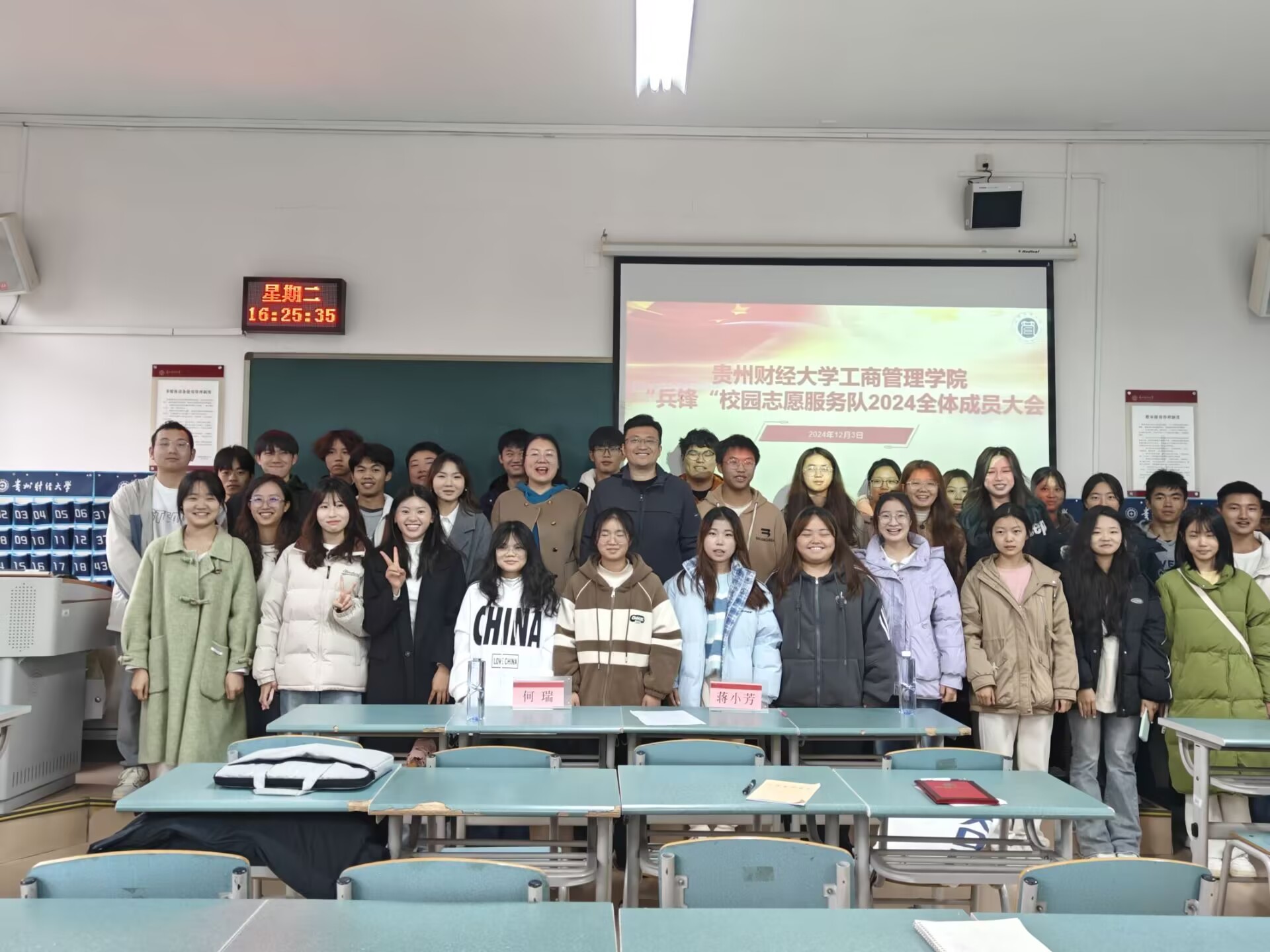 2024年12月3日16:00,beats365官网入口“兵锋”校园志愿服务队在崇德楼312教室召开2024年度总结表彰大会。工商管理公司党委副书记何瑞、beats365官网入口员工管理科科长、翠竹苑员工社区第二党支部副书记蒋小芳、“兵锋”校园志愿服务队全体成员参加了会议。
