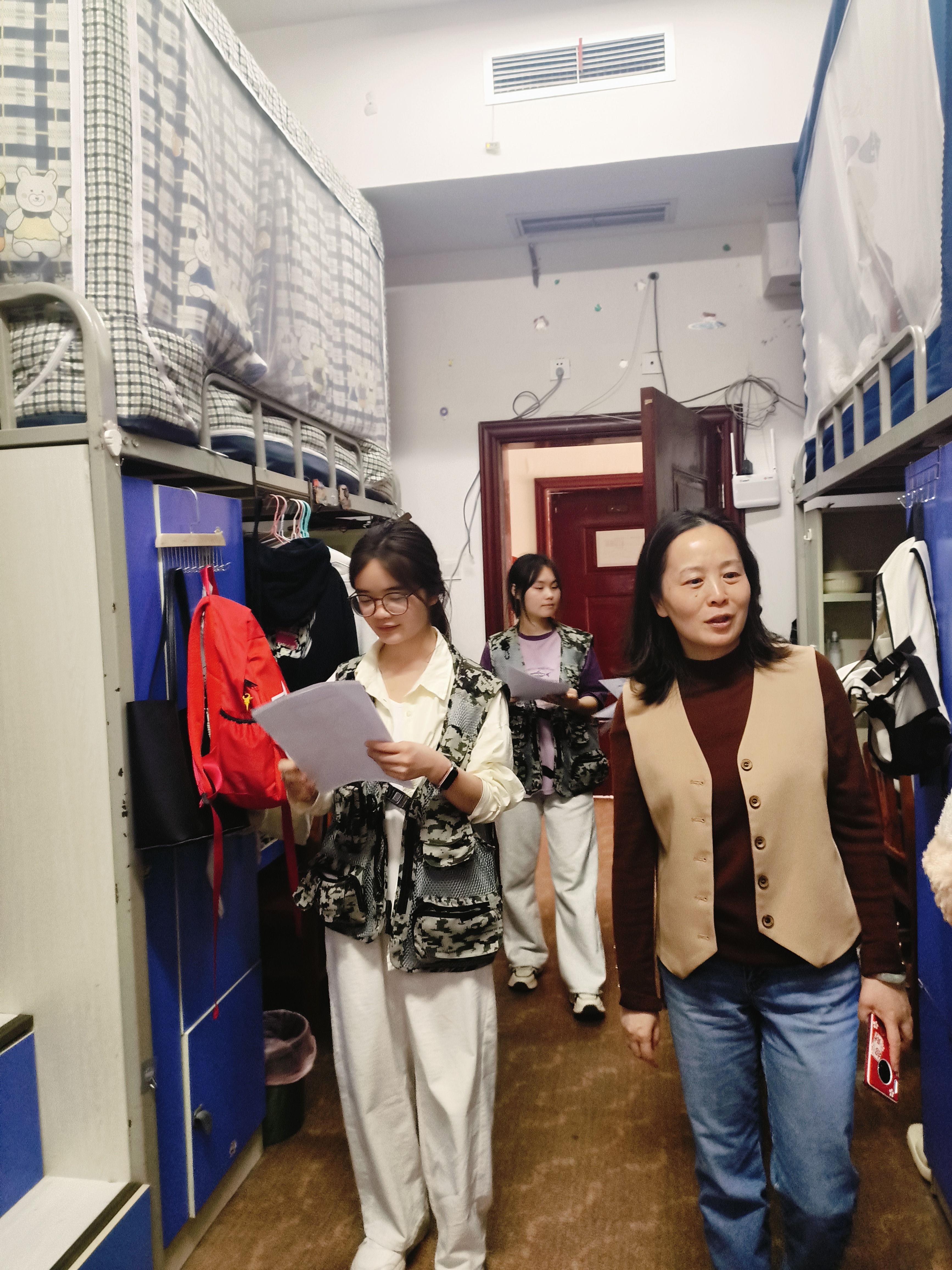 在检查评比过程中,有的寝室窗明几净,物品摆放井然有序,营造出干净舒适的生活氛围;有的寝室通过书法、绘画作品,彰显独特文化品位与艺术气息。但也有部分寝室存在卫生打扫不彻底、物品杂乱,寝室异味浓等问题,巡查人员当即记录并耐心给予整改建议,督促同学们尽快改进。