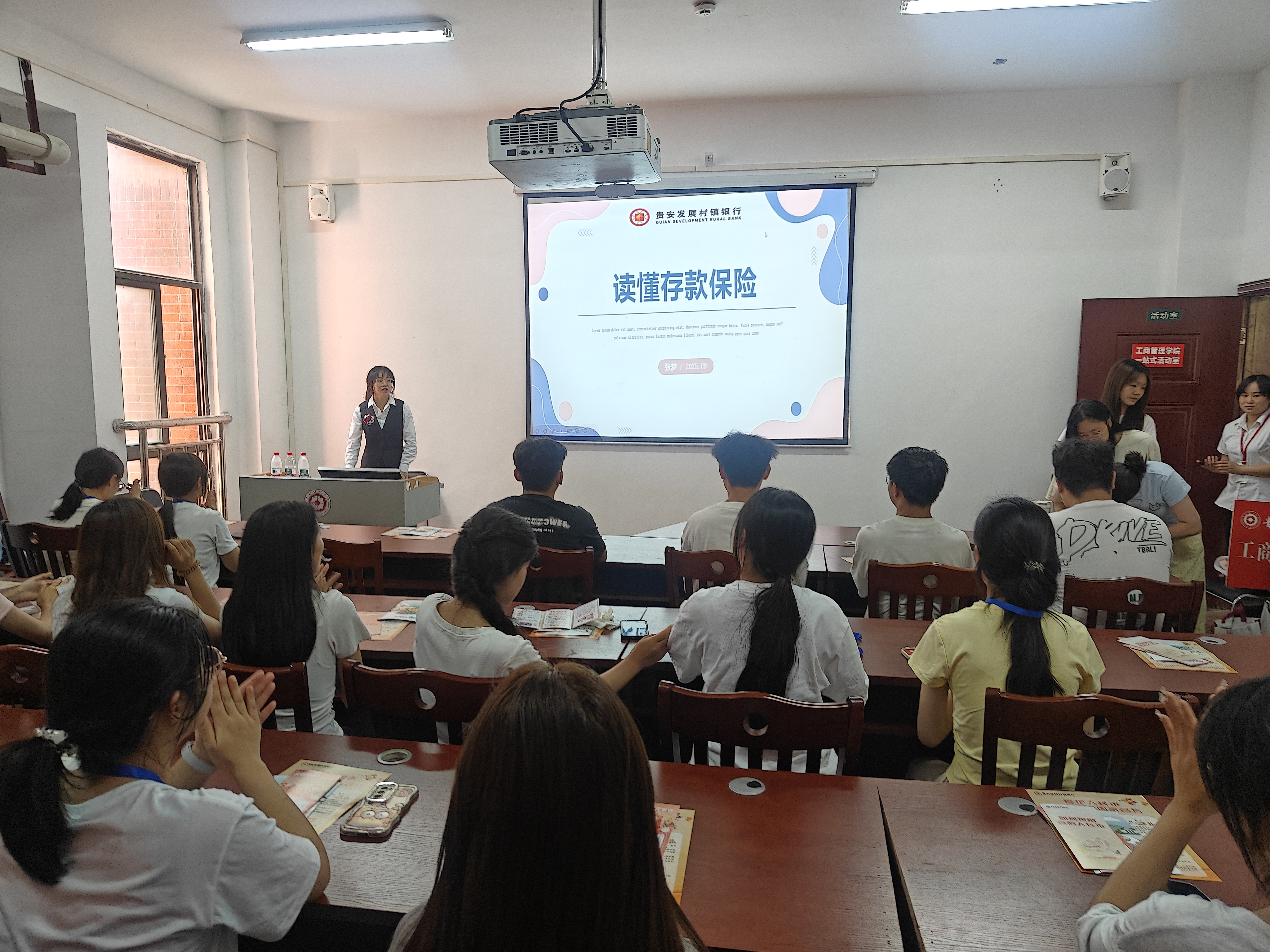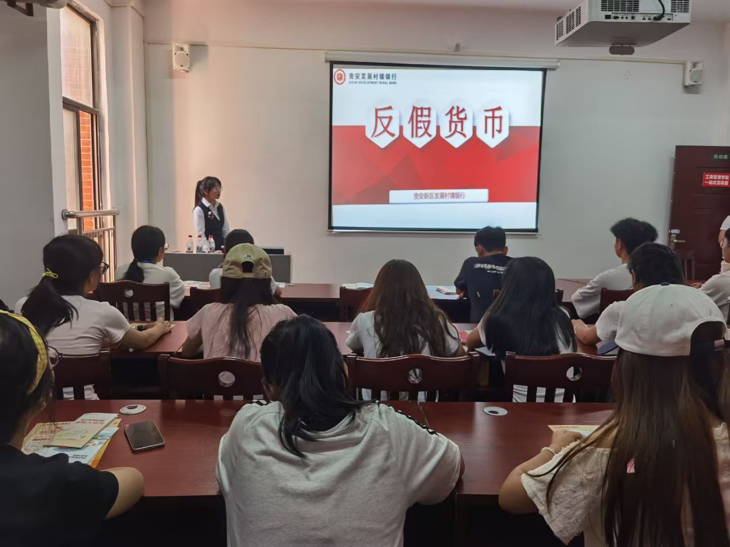 beats365官网入口“兵锋”校园志愿服务队联合贵安新区发展村镇银行开展反假宣讲会